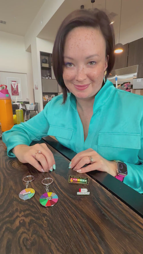 Our My Social Battery Sliding Communication Support badge helps you share your current energy level without saying a word. It shows exactly how many 'spoons' you have left for socializing. Clip it onto your clothes, bag, or anywhere you like to keep others in the loop!