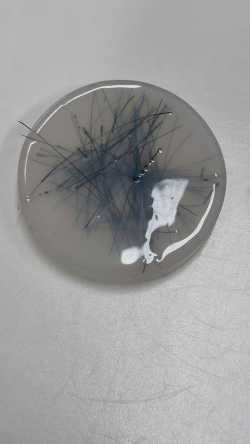 1.    Thread pick ‘em disc - contains both polyester threads and Japanese nylon fishing line. Designed to mimic pulling out hair. The two materials give different levels of 'tug' or resistance when extracted. The polyester thread can fray and break) in the process, adding to the 'surgical like' procedure of getting it ALL out. The nylon fishing line feels like pulling an ingrown hair out. rubbing along the sides you can often feel the ends of the nylon, quite like hairs on a chin lol. Â