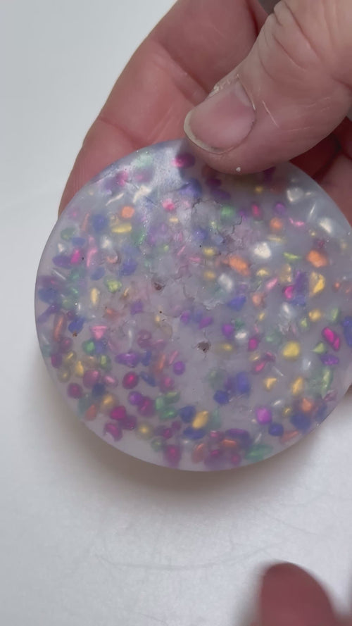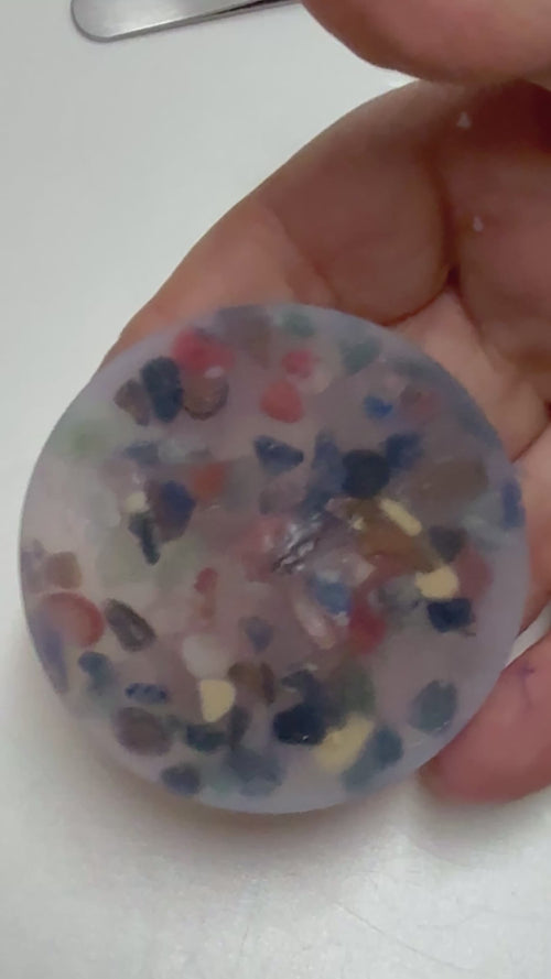 These polished natural stones can be popped out, picked out with nails or you can use the tweezers to extract. Can then be repurposed after they are out. Squishing the pad is quite satisfying both with stones still in and also when removed. (See note re Trypophobia below though). The Silicone, even after items removed, makes for a great sensory stim tool.
