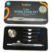 The Work Zone Set pairs our best selling ultra-smooth Kaiko Mega Cog spinner combined with a solid, gadget-loaded multi-function pen – designed for brains that focus better when their hands have something to do.