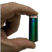 The vial is nicely weighted (approx. 29g) and made from stainless steel, with a gorgeous rainbow oil-slick finish. It comes in a metal window tin, so it feels gift-worthy straight out of the box.