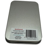 Packaging: Metal window tin with foam insert. Kaiko logo on base