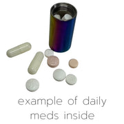 A tiny stainless steel screw top vial you can wear or clip on, so your medication (or other little essentials) actually make it out of the house with you.