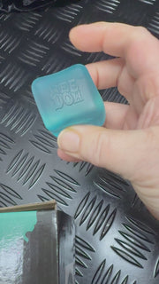 The Schylling Nee Doh Nice Cube filled with a non-toxic, glucose compound that always returns back to its original square shape. They are a slightly sticky, super solid squishy.