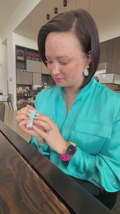 This compact keyboard keychain features four clickable keys and a sturdy keyring for convenient attachment. These may well surprise with how stimmy and satisfying they are!  They provide the 'right' amount of resistance and click.   If you like a quiet fidget these are NOT for you.