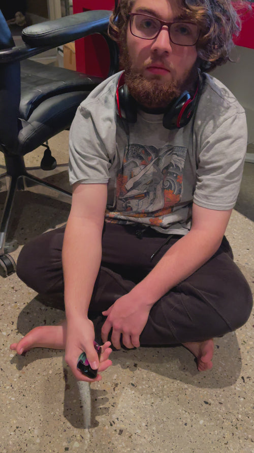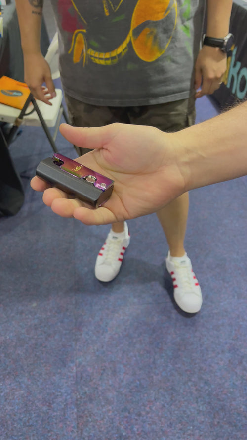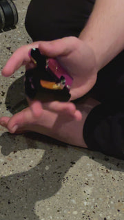 ツートンのマットブラックと光沢のあるオイルスリック仕上げのフィジェット。手や手首を下方向に動かすと、形が「切り替わり」、飛び出します。この動作は(人によっては)満足のいく音を出します。同じ「手首のフリック」を繰り返すと、動作が逆になります。素晴らしい asmr!