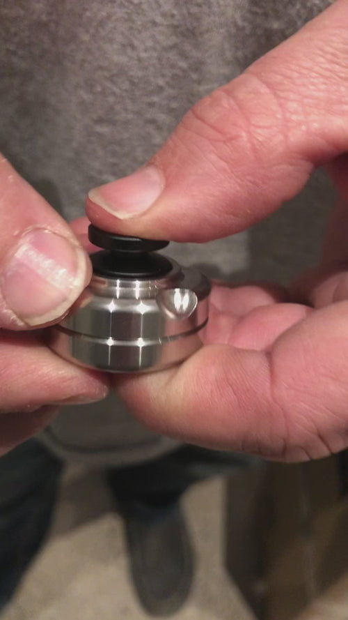 回転時にわずかに振動し、クリック感を与えるために動かすことができ、回転が遅くなると(内部の一連の小さな磁石のおかげで)カチッと閉じます。黒のミリタリー スタイルのケースに黒色で入っています。