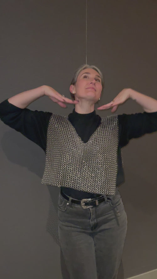 This weighted 1.4 kilo metal vest is crafted from high-grade stainless steel rings, each individually hand crafted.