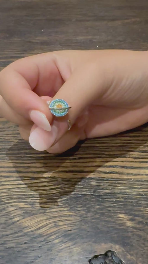 Kaleo Fidget Ring - Round Colourful Spinning Stearling Silver Ring for Anxiety