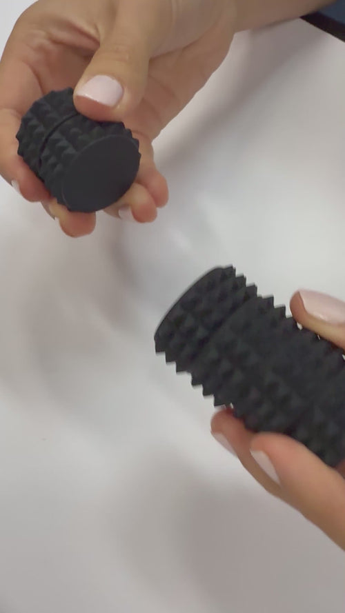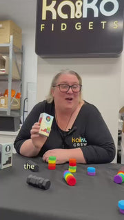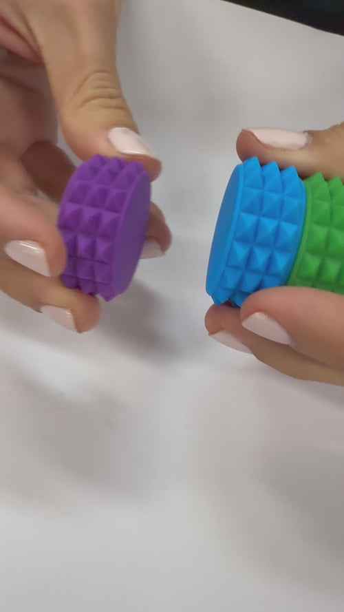 Each piece is a silicone-covered magnet with a velvety smooth surface that feels incredible in the hand. Depending on orientation, the pieces either repel or snap together, creating a dynamic sensory experience that encourages stacking, flipping and controlled movement.