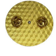 This large metal badge has a rotating front cover that moves to reveal the pronoun preference for the wearer.