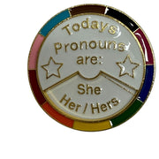 Today's Pronouns are... Rotating Metal XL Pin Badge